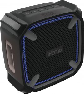 and Accent Lighting The iHome iBT372 is a waterproof portable Bluetooth stereo speaker system with speakerphone – including audio caller ID with Apple devices running iOS 10 or later — that connects to a Bluetooth device for wireless audio playback. IP67-certified water- and sand-proof plus military spec rated shockproof cabinet. Works with free Melody voice powered personal music assistant app to play music from Spotify, iHeartRadio and more. Accent lighting with five color changing modes with multiple colors at the same time can be engaged. Rechargeable lithium ion battery let you enjoy music anywhere (USB charging cable included) for up to eight hours. Also includes an aux-in jack to listen to any audio source.