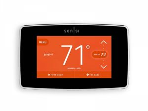 Sensi Smart Thermostat For just $129, the Sensi Smart Thermostat offers a highly rated, remotely accessible iOS and Android app, an app interface that changes color to let you know at a glance whether your system is heating or cooling, geofencing capability that automatically adjusts the temperature based on your proximity to your home, smart alerts to notify you of extreme temperature or humidity changes, and keypad lockout to prevent changes if needed.